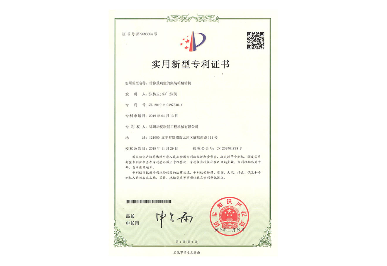 集裝箱翻轉(zhuǎn)機(jī)的附加功能